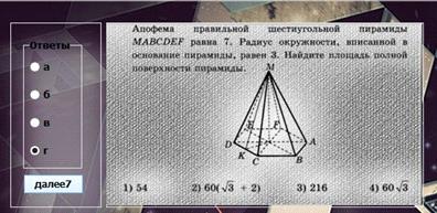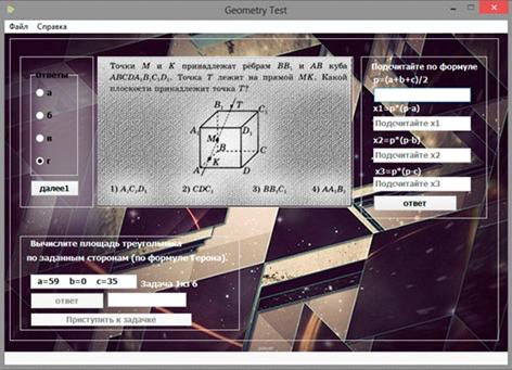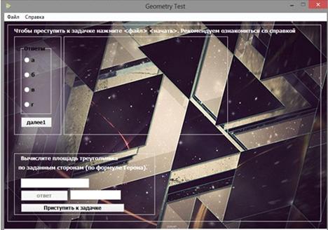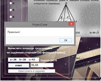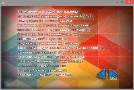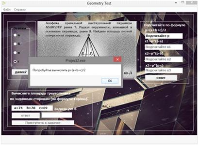 сторонам (по формуле Герона). Обучаемому предлагается шесть задач. Обучаемому