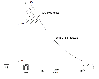 В качестве основной защиты трансформатора ГПП применим МТЗ.