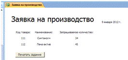 продукция].[Код товара] = Заявка.[Код товара]BY Заявка.[Код товара], [Готовая