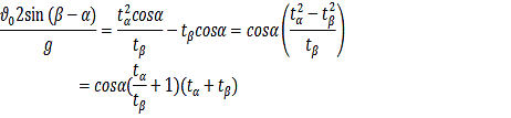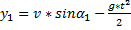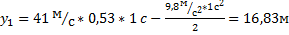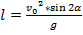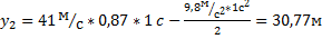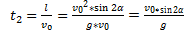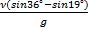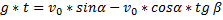 начала движения, если начальная скорость равна 57 м/с, а углы бросания равны