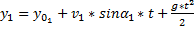 в свободном падении с наивысшей точки до земли через 5,57 (без начальной