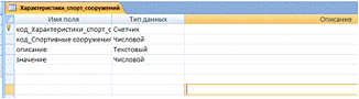 форму, которая содержит вкладки «Спортивные сооружения», «Характеристики