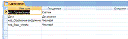 Рисунок 9 Список спортивных сооружений, дата проведений соревнований, вид