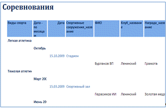 Рисунок 12 ФИО спортсменов, дата соревнований, название наград