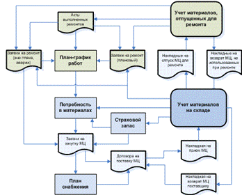 материалы приходуются на склад и отпускаются в ремонтные подразделения для