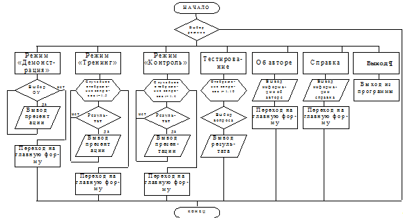 разработаны: режим демонстрация, режим тренинг, режим контроль и презентация