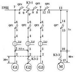 коротком замыкании в различных точках сети, произведена проверка основных