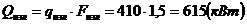 составляют 410 кВт/м2. Тогда тепловые потери излучением через