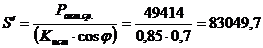 = 0,7 и коэффициента использования мощности в период расплавления Kисп= 0,85 составляет:
