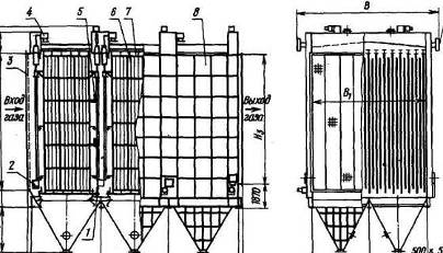 электродов; 6 - коронирующий электрод; 7 - осадительный электрод; 8 - корпус; 9
