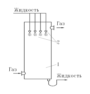 - колонна; 2 - форсунки.