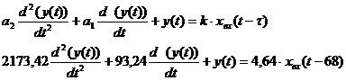 процесса: время регулирования = 700 с; перерегулирование = 119; коэффициенты