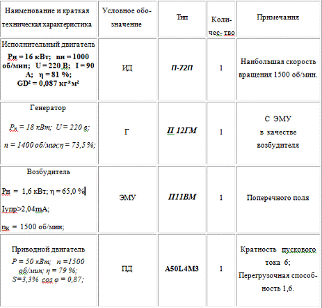 приводным ЭД, что и генератор G1.