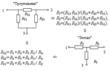 «треугольник» в «звезда» и обратно.