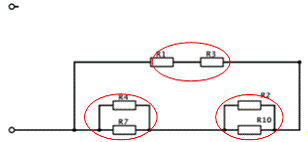 параллельным соединением элементов и объединим их в эквивалентное Rэ7.
