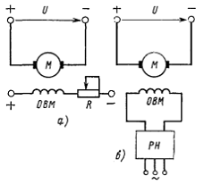 устройств или посредствам ползункового реостата (при малой мощности двигателя)