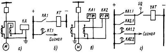 контактора КМ (рис. 9, а, б). Размыкающие контакты этих реле включены в цепь