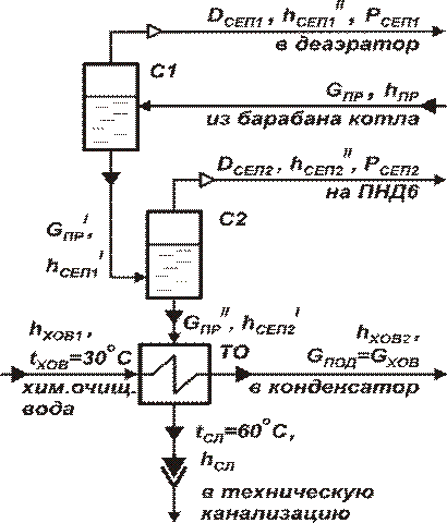 продувки котла С1 і С2, підігрівачів підживлювальної води продувної водою ТО,