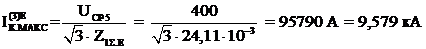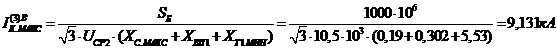 Мощность КЗ системы в максимальном режиме SК. МАКС = 5250 МВА, в