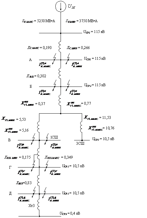 напряжений сети: UСР1 = 115 кВ, UСР2 = 10,5 кВ.