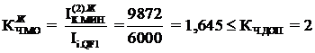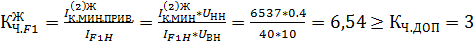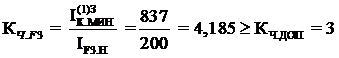 чувствительность (КЧ. ЗП = 1,07) к минимальному току КЗ