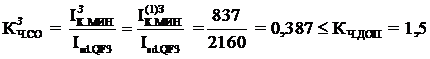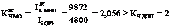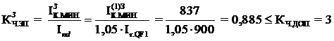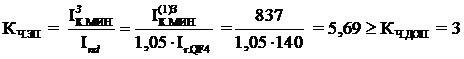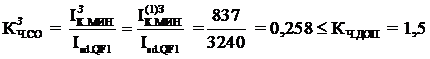 чувствительность (КЧ. ЗП = 0,885) к минимальному току КЗ
