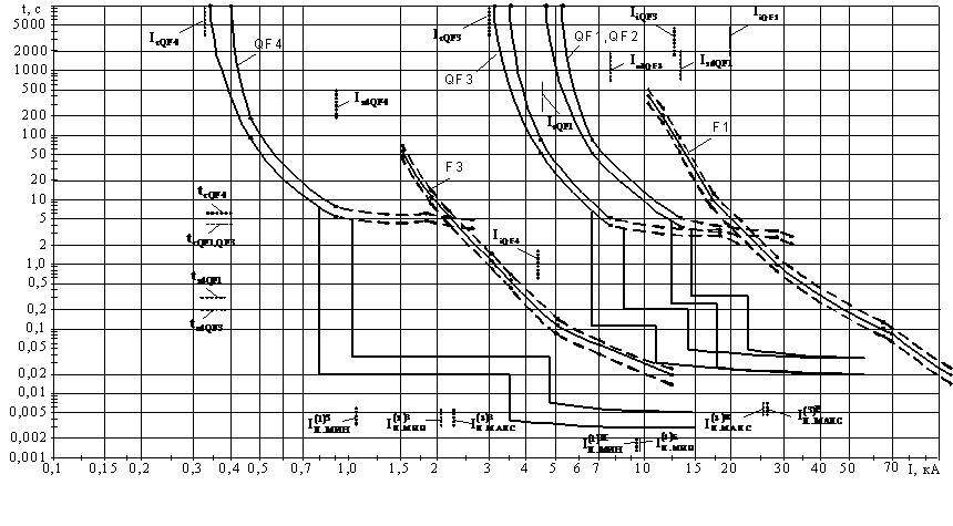 напряжения. После расчета уставок защит и время-токовых характеристик была