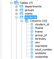 ключі таблиці «students»