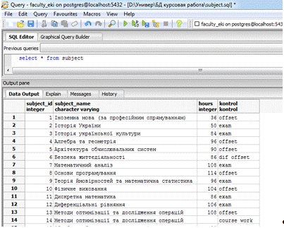 отримали базу даних факультету(рисунок 3.8).