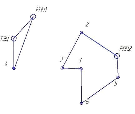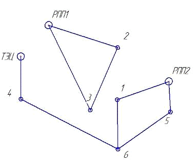 промышленного района (шесть потребителей, получающих питание от шин РПП и ТЭЦ).