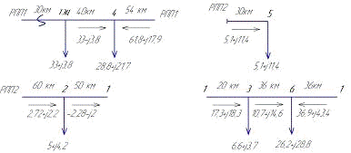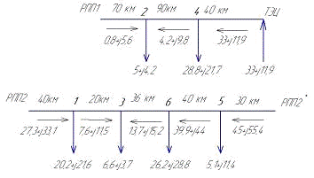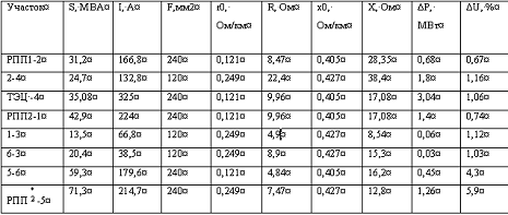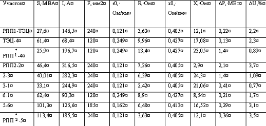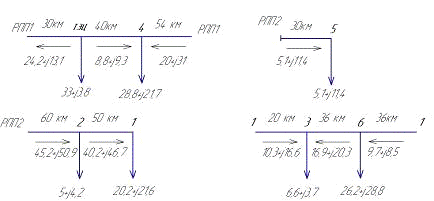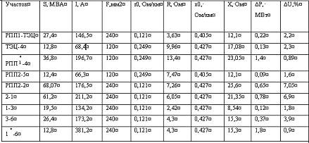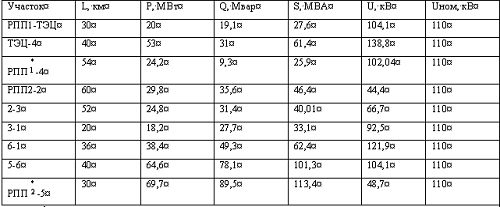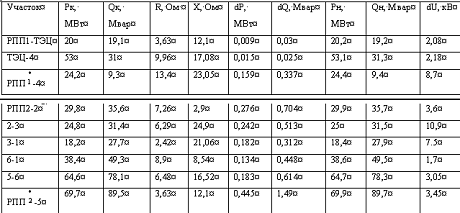 сопротивление линий . Подсчитаны потери мощности и напряжения в линиях.