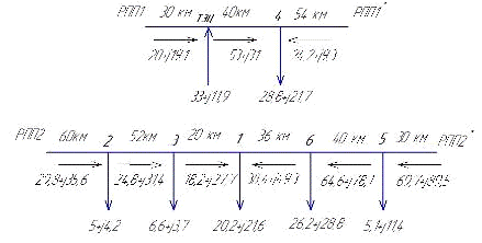 наиболее выгодного варианта (радиально-магистральная сеть). После этого