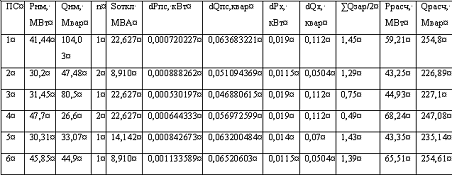 устройств РПН трансформаторов, уточнение баланса мощности и расстановки