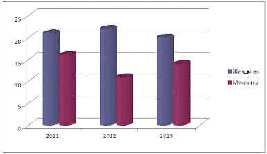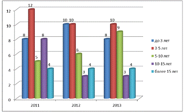 (30-39) порядка 50%, повысилась на 1% с 2011 г. по 2013 г. Уровень квалификации
