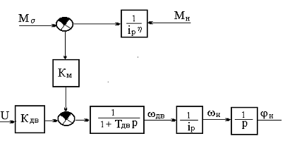 схема и передаточная функция двигателя с учётом редуктора и нагрузки