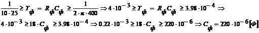 Выбор элементов фильтра должен обеспечивать ослабление амплитуды