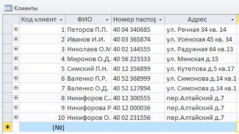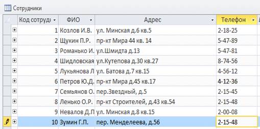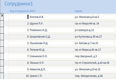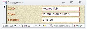 данных средствами СУБД MS Aссess