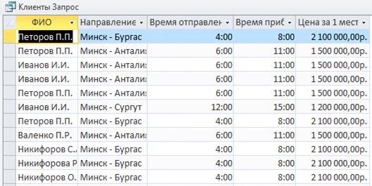 Рисунок 5 - Результат параметрического запроса