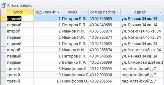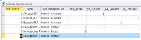 Рисунок 7 - Результат перекрестного запроса