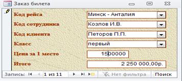 Основы бизнеса в Интернете. Создание базы данных 'Авиаперевозки'