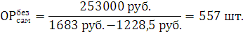 самоокупаемости продукции: по изделию Ф - на 345 шт.; по изделию К - 318 шт.;