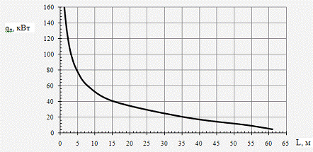 кВт/м2) находится на расстоянии 42,58м от устья скважины.
