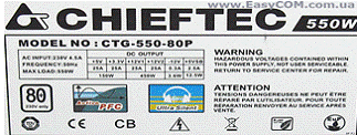 Таблица 1 Технические характеристики блок питания CHIEFTEC CTG-550-80P