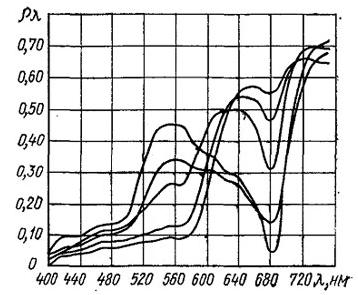 поверхностей и поглощение лучей определенной длины волны происходит в меньшей