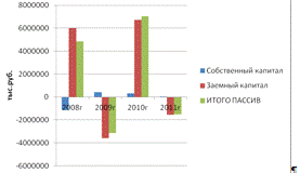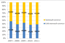 неравномерно и определял изменение пассивов. В 2008 и 2010 гг. заемный капитал