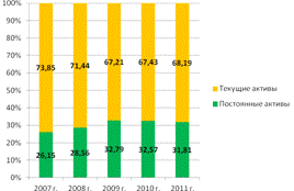 соответственно. В 2009 и 2011 гг. текущие активы уменьшались на 13 и 2%, что