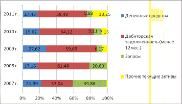 неудовлетворительной, особенно структура текущих активов. Значительная доля в