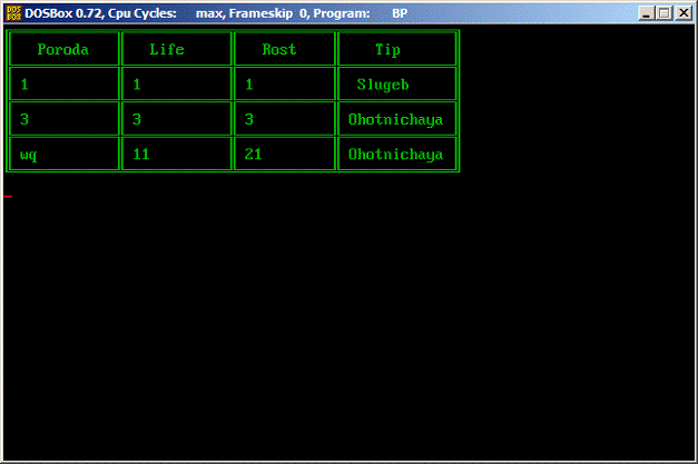 ('║ Poroda ║ Life ║ Rost ║ Tip ║');('║