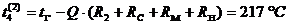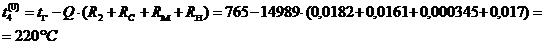 в) Граница металл - накипь, t3 = 244 °C