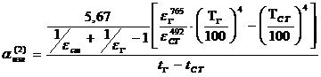 коэффициента теплоотдачи излучением